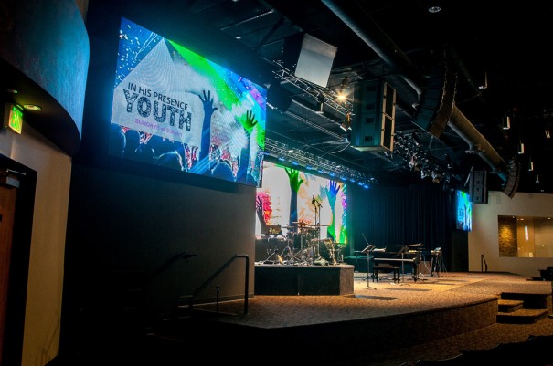 Los paneles EPV762 se han dividido en una configuración 7×4 a cada lado del escenario, mientras que los módulos EZ6 se han colocado en el centro, como telón de fondo, en un formato de 18×5 . Los paneles EZ6 fueron suministrados a la iglesia por Guitar Center Professional de Sherman Oaks (加利福尼亚州).