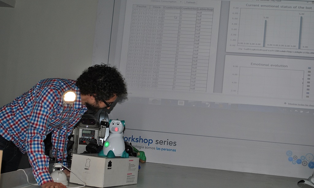 从这个意义上说, Aisoy1 integra un monitor de emociones (felicidad, tristeza, desagrado, miedo, reproche, remordimiento, esperanza,……) y aprende de su entorno, lo que permite que ofrezca las respuestas más adecuadas a cada persona, ya que el usuario puede programar con unas sencillas e intuitivas interfaces su relación, “además de que en la web evaluamos las aplicaciones que realizan los usuarios y las integramos para que puedan añadirlas el resto, potenciando la colaboración entre los robots de la comunidad Aisoy”.