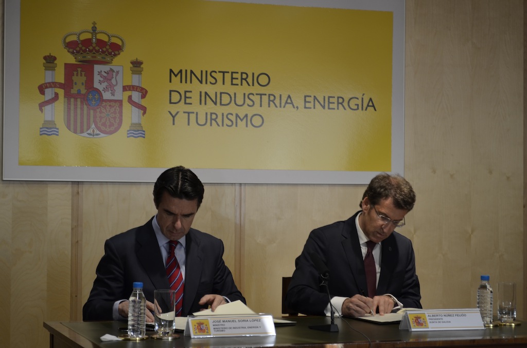 工业部长, 能源与旅游, 何塞·曼努埃尔·索里亚, 以及加利西亚自治区主席, 阿尔贝托·努涅斯·费霍, han firmado varios convenios como parte de la Agenda Digital para España, para impulsar gracias a la inversión de 16,75 百万欧元, la aplicación de las TIC en sanidad, servicios sociales y justicia en Galicia.