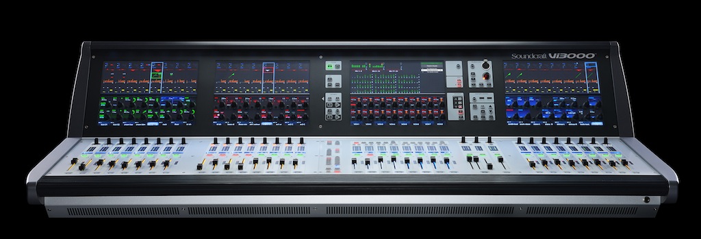 Soundcraft Vi3000 调音台展现新外观, 具有更高效设计的控制界面, 骗局 36 推子, 24 单声道/立体声总线和一个包含四个 Vistonics II 触摸界面并提供设计优雅的 3D 图形的宽阔显示面板.
