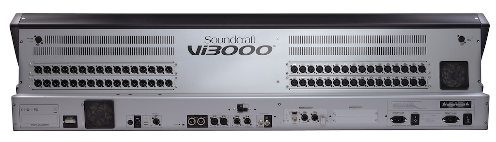 Vi3000 控制台的后面板上提供了广泛的连接. 除了所有数字和模拟输入, 调音台有 MIDI, USB, 以太网, DVI 输出, Dante/Madi 录音输出, 冗余电源和其他连接. 它还预留了两个空间用于安装 Madi 舞台盒卡的附加硬件。, 允许您连接多个输入扩展模块和 Soundcraft 舞台盒.