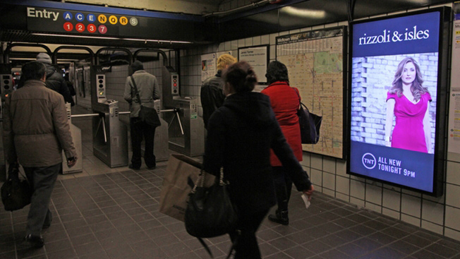 哥伦比亚广播公司户外 y Turner Broadcasting System se han unido para poner en marcha la que se considera la mayor red digital out-of-home realizada en una estación de metro. El proyecto engloba la instalación de diez grandes pantallas de vídeo en las estaciones de metro más concurridas de Manhattan: Grand Central, 时代广场, Columbus Circle, Bryant Park, Lincoln Center y Herald Square.