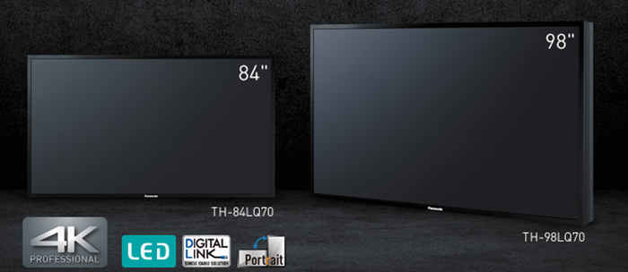 Las pantallas LED de la serie LQ70 de Panasonic se ofrecen en formatos de 84” (TH-84LQ70) y 98” (TH-98LQ70) con una resolución 4K y un diseño de perfil ligero y resistente, idóneas para utilizar en un amplio abanico de aplicaciones como señalización digital en entornos de retail, alquiler y eventos, 设计, simulación o salas de control.