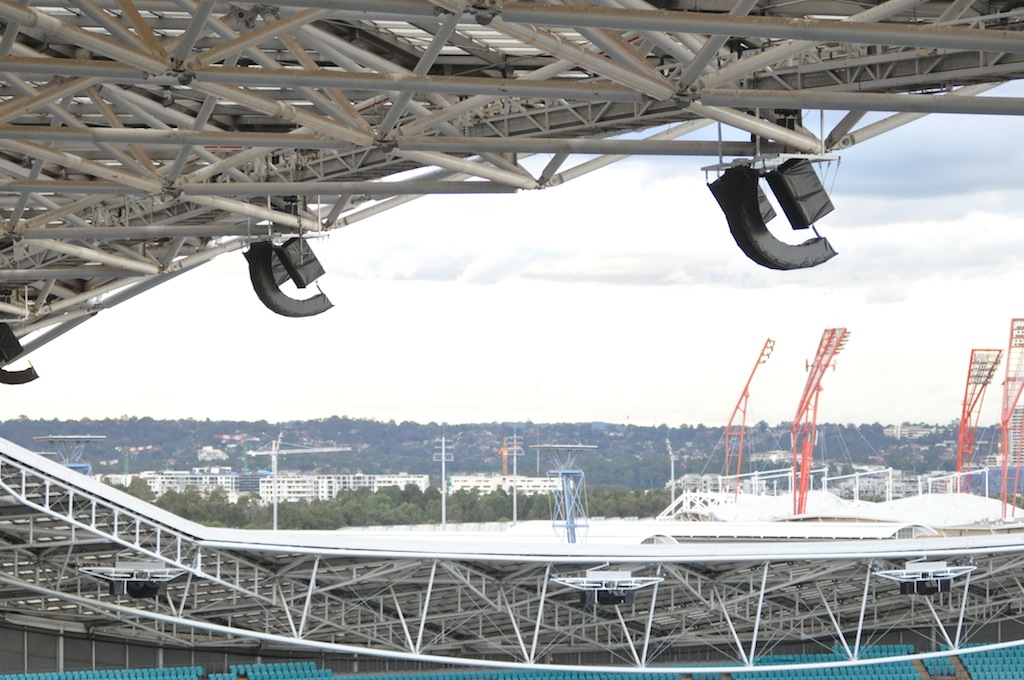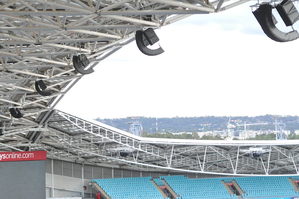 凭借创新的理念, 悉尼 ANZ 体育场, 澳大利亚参考, 推出了音乐会系统, 那些参加的人 80.000 角色, realmente potente y completado con graves vibrantes en este reverberante espacio con equipos de d&乙.