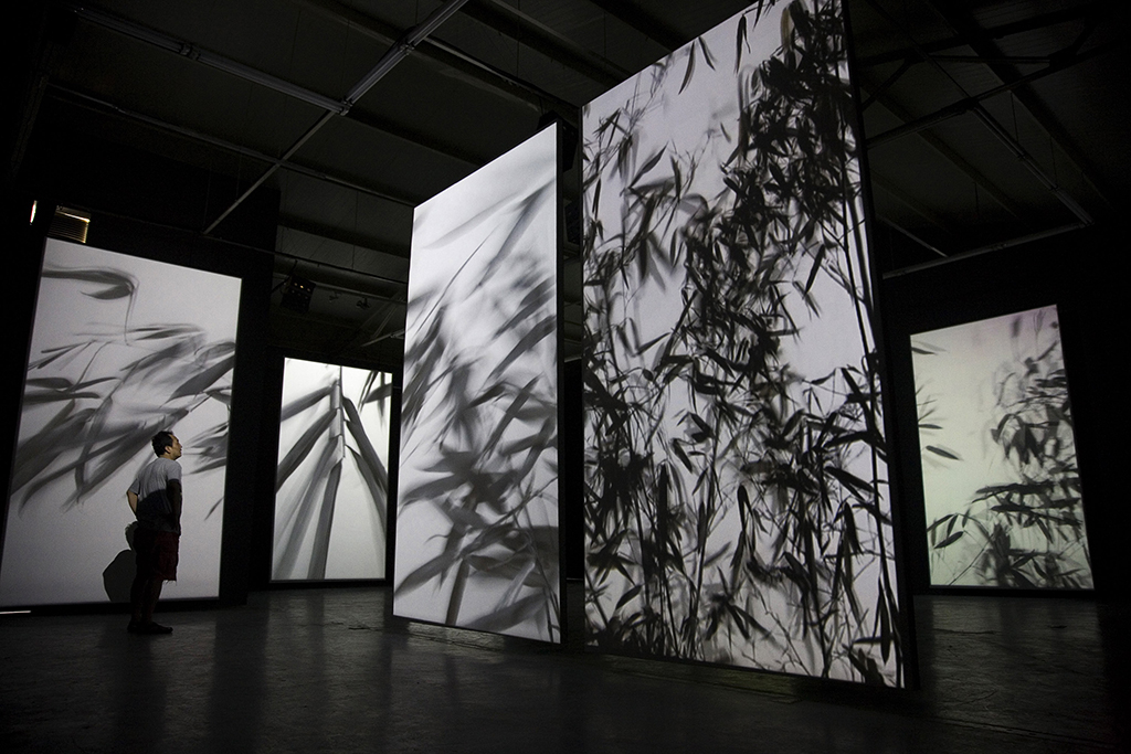 La obra Relating – it’s about Ya de Wang Gongxin ha sido definida por el NGV como “una exuberante experiencia que desarrolla a un ritmo rápido y sin descanso la vida de Beijing con un intenso despliegue de sonido, color y movimiento”. Y para su realización se han precisado nueve proyectores.