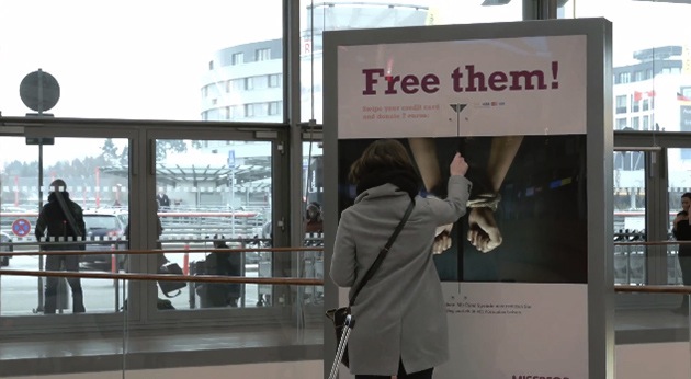 Los mupis interactivos distribuidos en los aeropuertos internacionales de Hamburgo y Ámsterdam han sido el soporte digital idóneo de la campaña ‘The social swipe’ para la organización caritativa 悲惨者, en la que los ciudadanos han podido realizar con su tarjeta de crédito, de manera segura y en tiempo real una donación digital e interactiva de dos euros en cada acción.