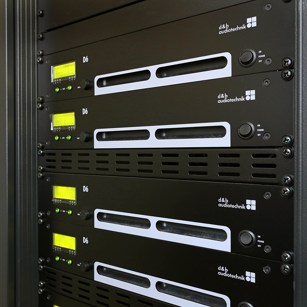 Los amplificadores D6 que alimentan los altavoces se han situado aparte, en una sala de control. Los técnicos de Neuenhagen han dispuesto que los amplificadores vayan con cada altavoz individualmente para asegurarse de que en cada tribuna haya la cobertura suficiente incluso si un amplificador concreto no funcionase correctamente.