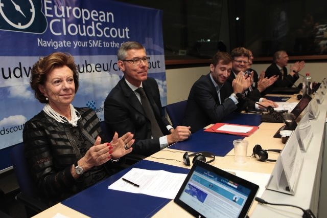 El servicio comenzó a funcionar durante el evento celebrado en Bruselas el pasado 10 七月, que contó con la presencia de la vicepresidenta Neelie Kroes (在图像中), quien señaló su satisfacción porque “esta iniciativa se esté desplegando en toda Europa. '云’ ofrece a las empresas la oportunidad de reducir costes y facilitar su crecimiento. 拉斯 pymes son la columna vertebral de la economía europea, por lo que resulta de vital importancia impulsar el uso de cloud computing entre ellas”.