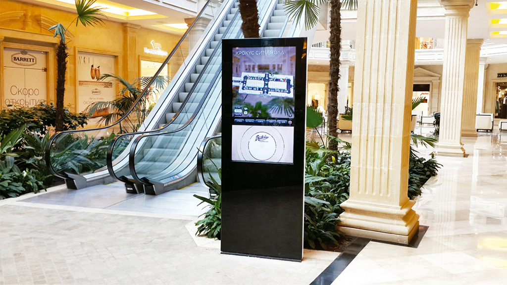 Crocus Group 在莫斯科购物中心部署的数字标牌网络中使用了 Scala 技术, que sirve como apoyo de sus soluciones de wayfinding.