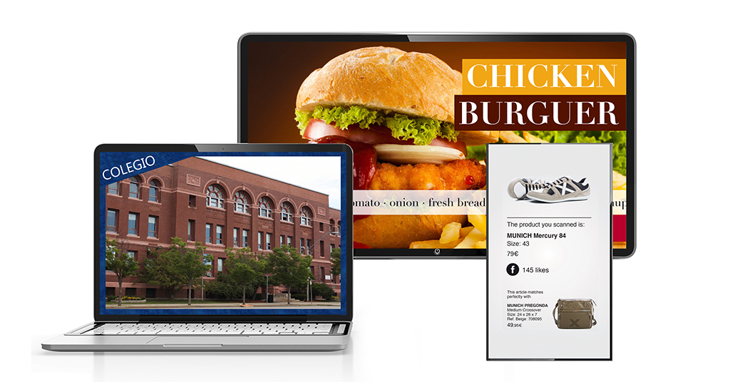 En el entorno de la educación, su muestra fue una parrilla con información de un centro escolar, actividades y noticias, utilizando la oportunidad que brinda la solución de Beabloo de publicar contenido en redes sociales de forma sencilla y rápida, a la vez que también se publica en cartelería digital, app móvil, y web. 除了, también se han integrado códigos QR para facilitar al estudiante la descarga de archivos relevantes.