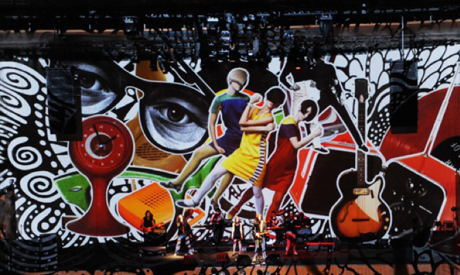 任何活动都可以使用投影映射和创意图像进行改造,例如“摇滚革命”中的表演, 结合了现场乐器和原创声音的沉浸式多媒体表演.