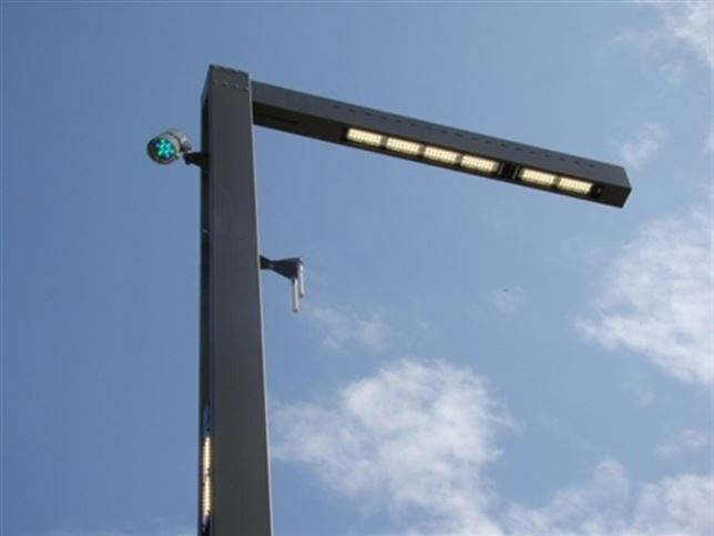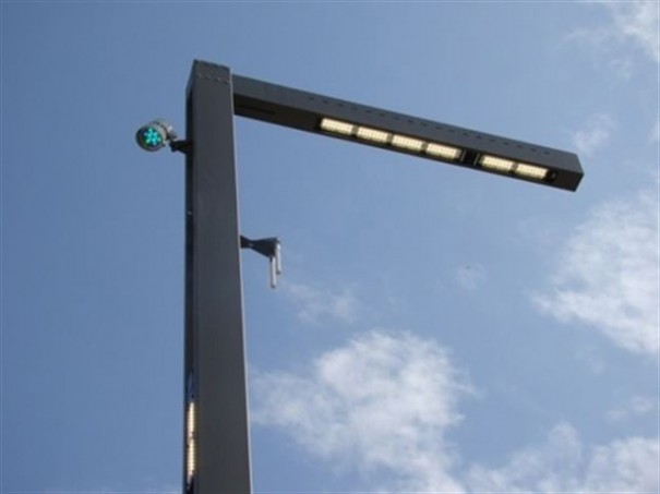 El elemento que se instalará en el centro de los pasos de peatones permitirá incorporar cámaras de servicio de tráfico en la parte superior. También es posible la instalación de elementos semafóricos en los propios postes.
