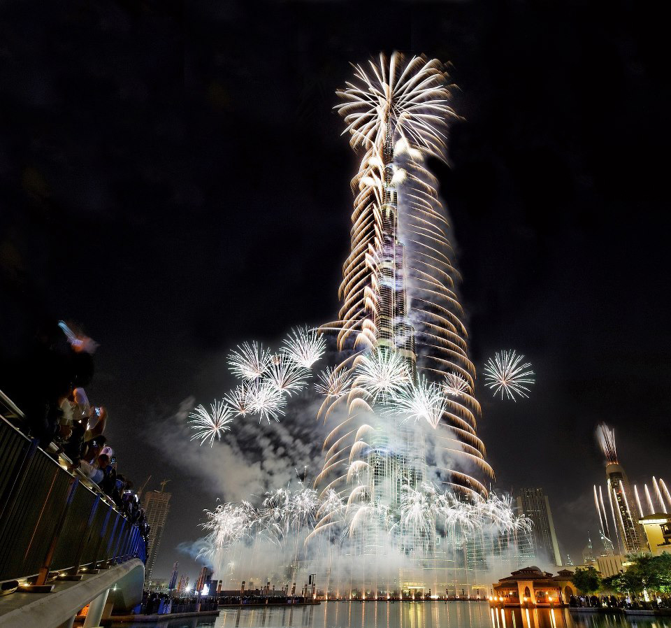 在 2010, 迪拜的 Burj Kalifa 摩天大楼被定位为最高的建筑,去年新年前夕,它凭借一场展示最大的 LED 照明立面的表演而进入吉尼斯世界纪录.
