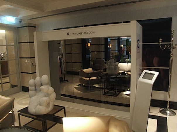 Gesaky Interactive Mirror, dotado con paneles verticales HD de gran formato, cámaras y un sistema inteligente de reconocimiento, interactúa de forma sencilla con el consumidor que se prueba una prenda; mostrando no sólo cómo le queda sino ofreciéndole en la pantalla lateral más opciones de complementos, de colores, estilo y accesorios adecuados a la misma.