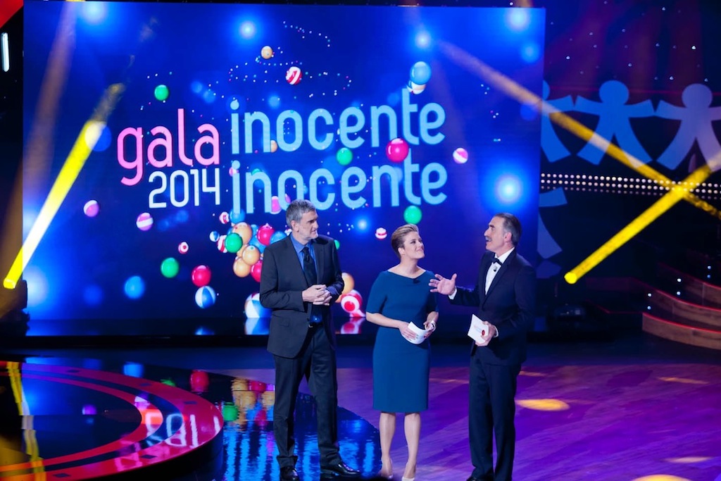 Con el lema ‘Una esperanza contra el cáncer’, 版本 2014 de la ‘Gala Inocente, Inocente’, que anualmente retransmite La 1 的 西班牙电视台 en colaboración con la Fundación Inocente, fue un éxito de audiencia -1.590.000 espectadores y un 12,7% de cuota- y de recaudación, 总共有 1.300.000 euros gracias a los donativos de los espectadores para luchar contra el cáncer infantil.