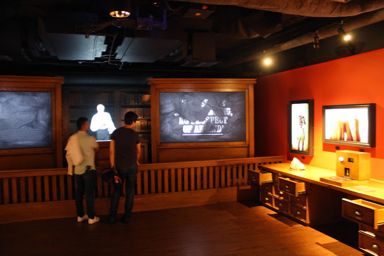 Hutton parece estar en la sala a través de una aplicación basada en la técnica de Pepper Ghost, un efecto de muy utilizado en teatros, casas encantadas, trucos de magia y diferentes atracciones. Esta ‘ilusión fantasma’ está creada sobre una pantalla LCD de formato horizontal 三星 的 63 pulgadas que está flanqueada por pantallas de proyección de estilo pizarra, cuyos contenidos son alimentados por proyectores de 奥图码.