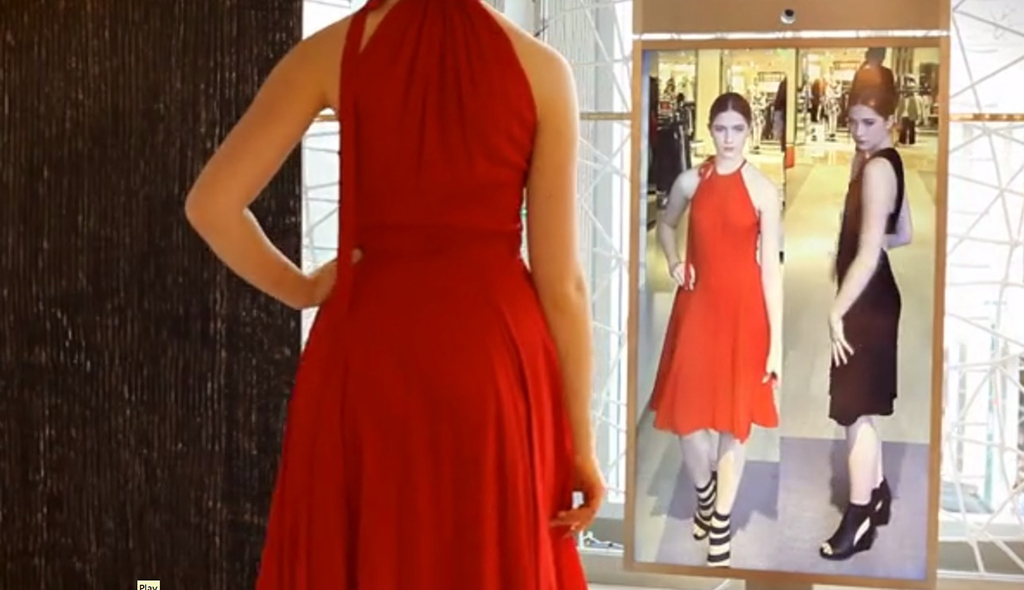 Una nueva forma de comprar en las tiendas de moda es lo que propone Neiman Marcus con el MemoryMirror que ha instalado en su establecimiento de Walnut Creek. Un espejo digital que permite ver como queda la ropa en diferentes colores y accesorios sin tener que cambiarse.