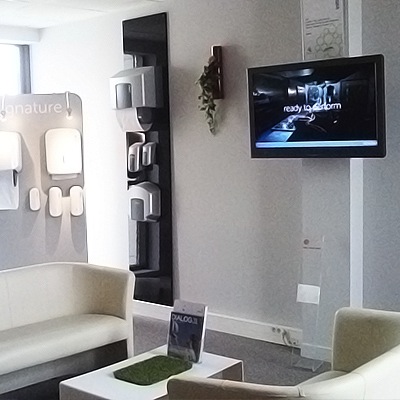 Para mejorar la comunicación corporativa con sus empleados y clientes, la compañía ha apostado por la tecnología de digital signage, con la instalación de pantallas de 40 英寸 尼奥沃公司 en veintinueve salas de descanso de sus centros locales, que muestran información de interés de su labor y consejos de seguridad e higiene, control de plagas, 新产品, ETC.