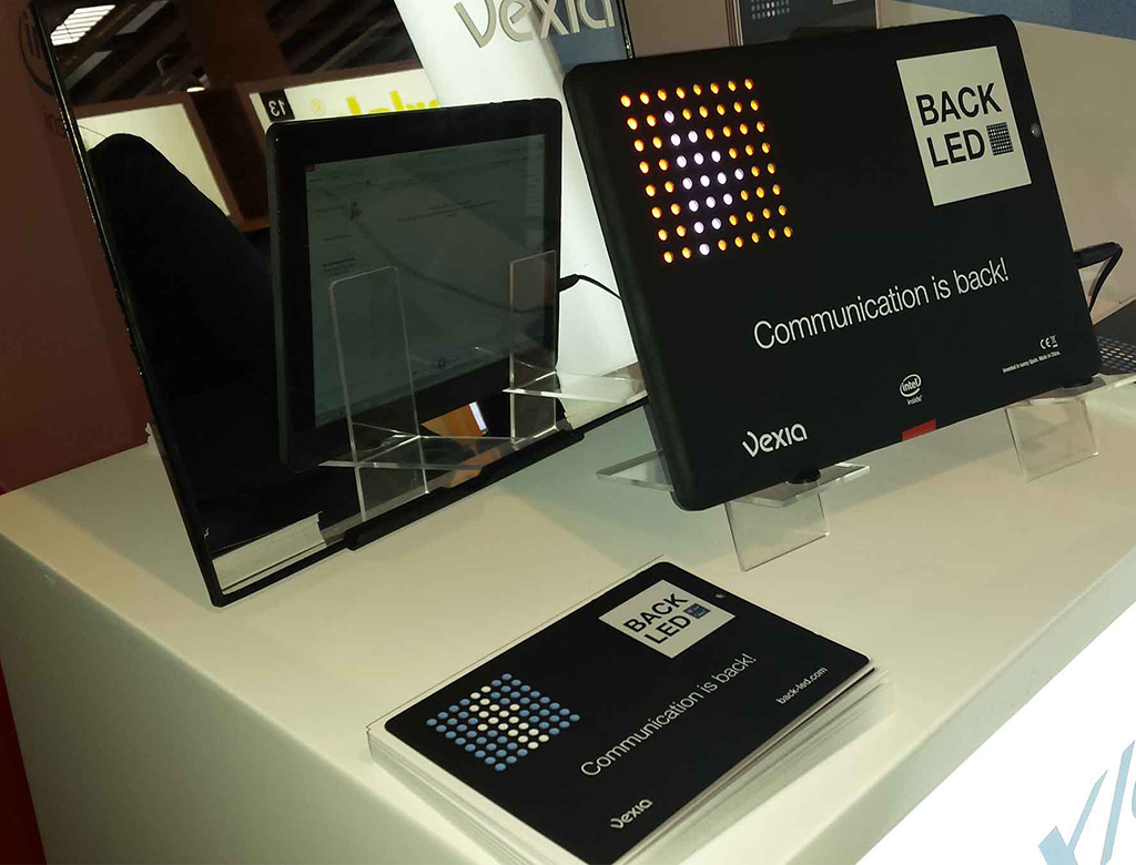 Vexia, 它分销谁的产品 抽筋, ha desarrollado un nuevo concepto denominado Back Led. Es una innovadora tecnología que, colocada en la parte trasera del portátil, tablet o smartphone, permite visualizar qué está sucediendo en la pantalla del dispositivo o puede usarse para interactuar con otras personas.