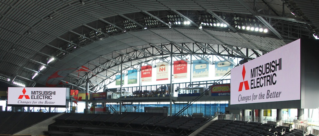 三菱电机 ha completado la instalación de tres pantallas LED Diamond Vision en el estadio japonés Sapporo Dome, 东京奥运会场馆之一 2020, al Norte del país, que además se han convertido en los sistemas de visualización Led instalados hasta ahora en un estadio de Japón con mayor resolución de imagen (cinco veces más) y contraste.