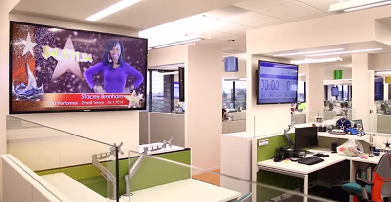 El proveedor de revestimiento de ventanas Blinds.com ha implementado una solución de señalización digital en su centro de atención al cliente para optimizar las comunicaciones internas mediante el software alojado en la nube de 现场标牌.