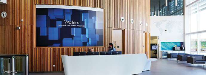 艾维斯 ha creado en Reino Unido uno de los videowalls curvos convexos más grandes de Europa. La instalación de 3,8×2,2 metros ha sido realizada en la nueva sede de la compañía de espectrometría de masas e instrumentos de análisis Waters Corporation en Wilmslow (Cheshire). La implantación de la infraestructura ha corrido a cargo de la empresa Saville AV.