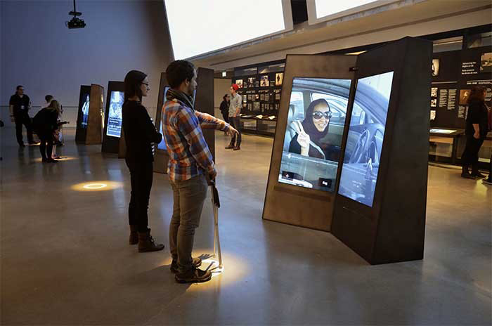 Los visitantes también disponen, a los largo de su visita al museo canadiense para los Derechos Humanos, de numerosas pantallas interactivas, entre las que se pueden ver modelos táctiles 链接触摸 的 27 英寸. Para asegurar que todos puedan acceder a los servicios interactivos, Electrosonic colaboró estrechamente con el equipo del museo para diseñar Key Pads que permiten que las personas con discapacidad también puedan disfrutar de esta tecnología.