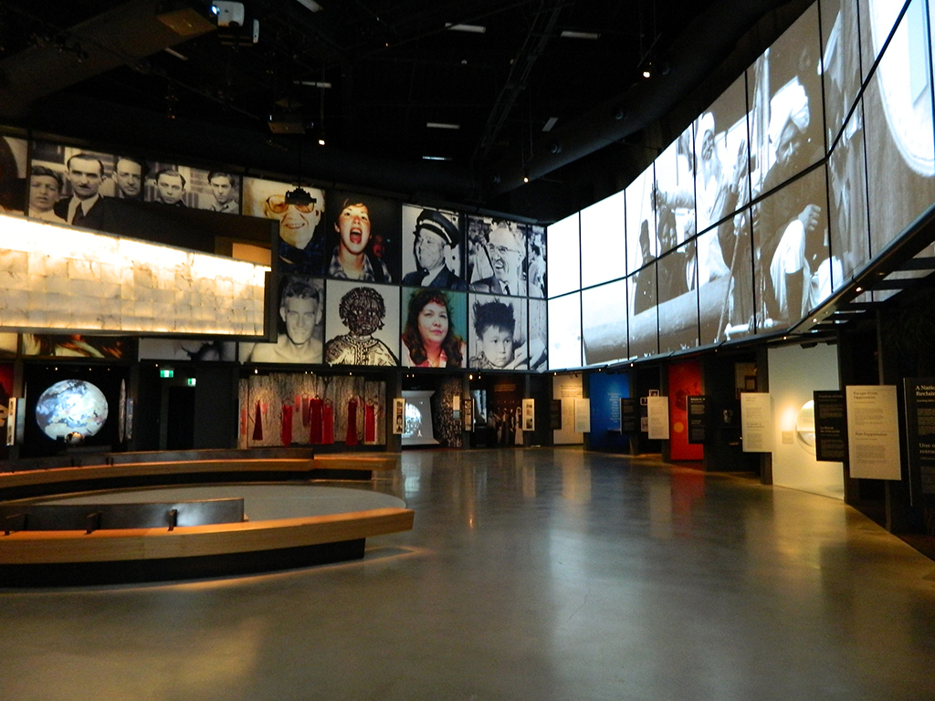 Otra galería, la Examining the Holocaust, presenta una única pantalla y un proyector Barco CNWU-61B. En sus paredes se muestran fragmentos que simbolizan el ‘Infamous Kristallnacht’ de los nazis. Un segundo teatro, visualiza una película con el Holocausto ucraniano (Ukrainian Holodomor), presentando una configuración similar. Una combinación de cuatro proyectores alimentan la proyección de 24,3 地铁.