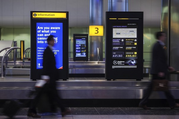 El aeropuerto de Heathrow es de nuevo un referente en ofrecer servicios de comunicación digital al servicio del pasajero a través de su red de pantallas DooH operadas por JCDecaux. En esta ocasión, se trata de un comparador entre Heathrow Express, el servicio de tren, y el que ofrecen los famosos black taxis, cuyos precios varían en función de la duración del viaje y de la distancia recorrida.