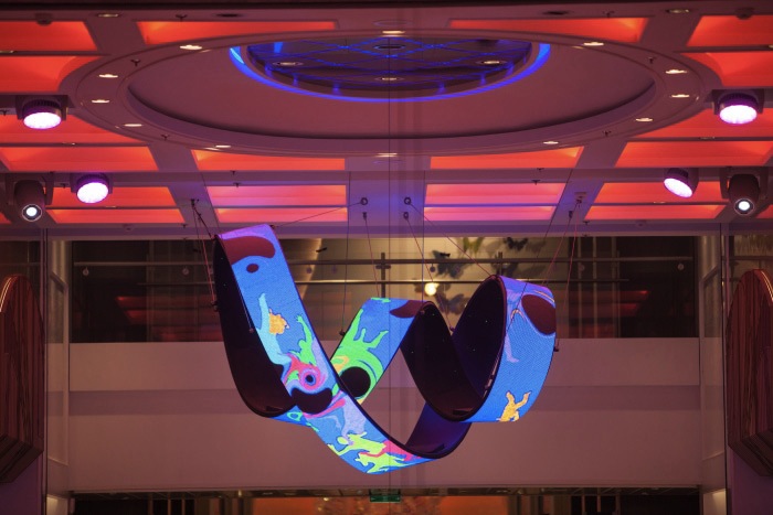 Se trata de una galería comercial repleta de tiendas, restaurantes y bares, que atraviesa la longitud del barco, proporcionando a los pasajeros una zona de ocio y compras. Platinum Wash Led Zoom y Platinum Spot Led Pro II se han instalado a lo largo de esta galería para ofrecer diferentes ambientes de iluminación a lo largo del día.