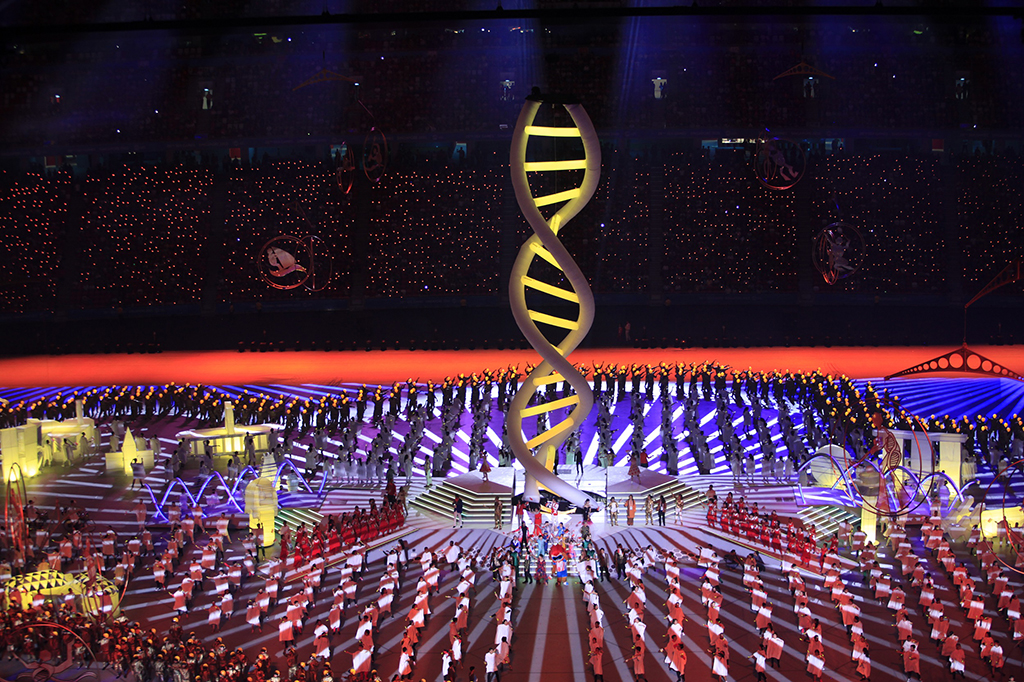 La ceremonia de apertura ha ofrecido un espectáculo de proyecciones masivas en el que han intervenido 5.000 角色, con accesorios apoyados por un sistema aéreo y, acompañado de proyecciones multimedia y un gran despliegue en iluminación y sonido.