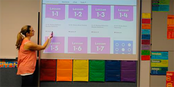 En cada una de las aulas de la escuela primaria de Glenwood en Sacramento se han instalado proyectores Hitachi CP-TW3003 para que los alumnos pueden interactuar con las imágenes mostradas en la pizarra digital.