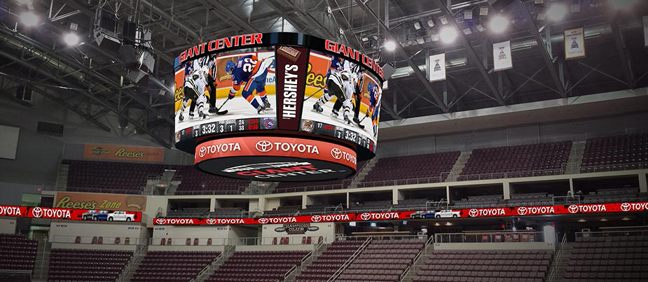 La solución de visualización que Daktronics está instalando en el estadio Giant Center de Pensilvania ofrece información en vivo durante los partidos, con repeticiones instantáneas, anotaciones y estadísticas, además de servir como soporte publicitario para patrocinios.