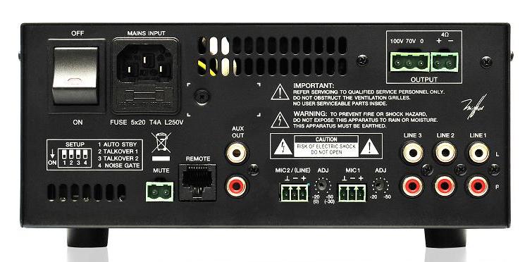 La conexión entre el sistema HMA120 y los altavoces es muy sencilla, ya que un único cable de altavoz los une: gracias a la salida en alta impedancia del HMA120 (línea de 100V) los cuatro altavoces pueden conectarse en paralelo a la línea de cableado, sin importar su ubicación física ni su distancia al equipo, ni tampoco la impedancia del conjunto.