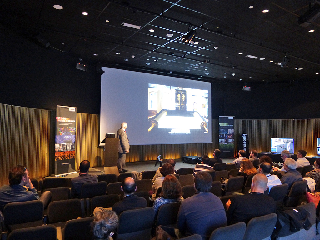 El consultor Javier Vergara aprovechó la ocasión para presentar uno de sus recientes proyectos y Manuel Fernández, 技术总监 Acciona 制作与设计 explicó uno de sus principales casos de éxito, el Museo de la Memoria Judía de Moscú, en el que se han utilizado equipos de Panasonic.