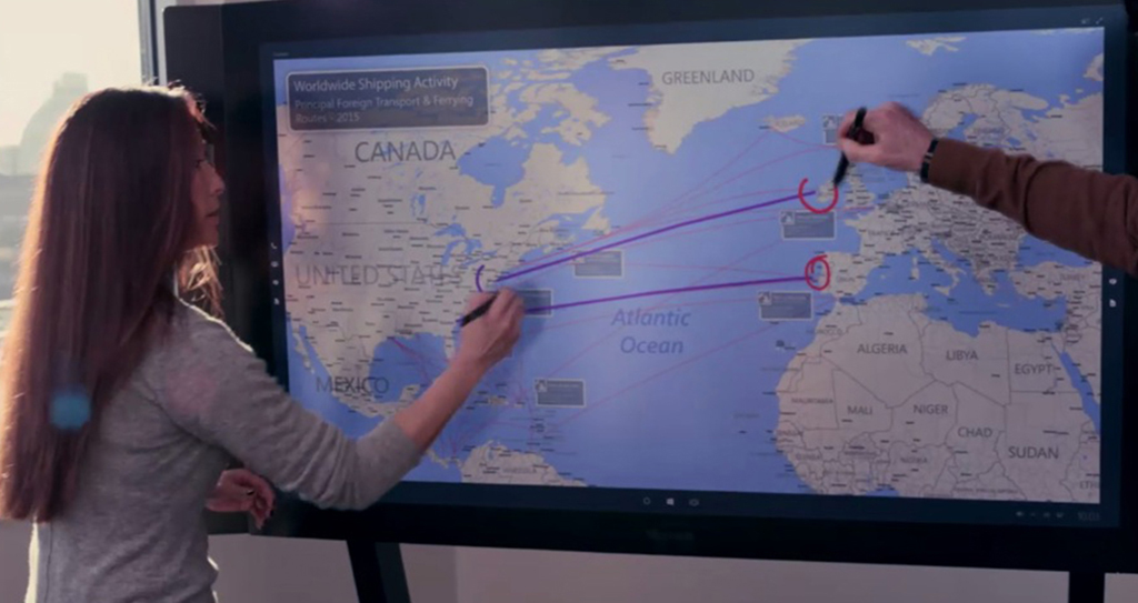 Surface Hub ofrece a los clientes finales, en una sola pantalla, toda la potencia y versatilidad de un dispositivo Windows 10 completo y conectado, pero con la simplicidad y consistencia de una pantalla multitáctil, capaz de detectar cien puntos y utilizarse a la vez por varias personas (更多细节在 数字AV杂志).