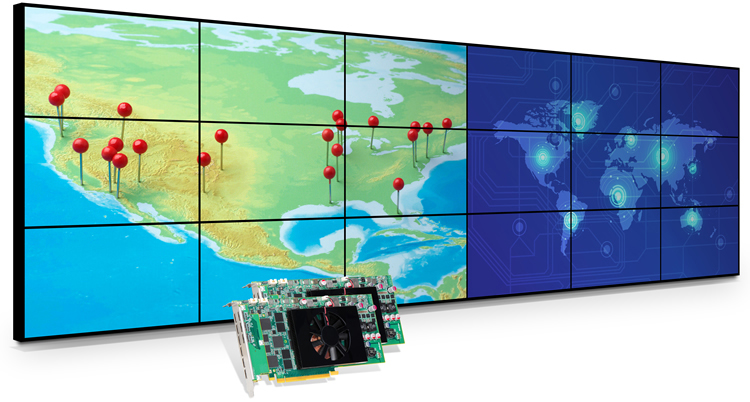 Su compatibilidad con el escritorio ampliado a lo largo de nueve salidas sincronizadas permite ejecutar cualquier aplicación a pantalla completa a lo largo de un mural de vídeo de 3×3, lo que la convierte en la tarjeta idónea para instalaciones de señalización en entornos de venta minorista, 公司的, de entretenimiento y de recepción, así como en sala de control, control de procesos y transportes.