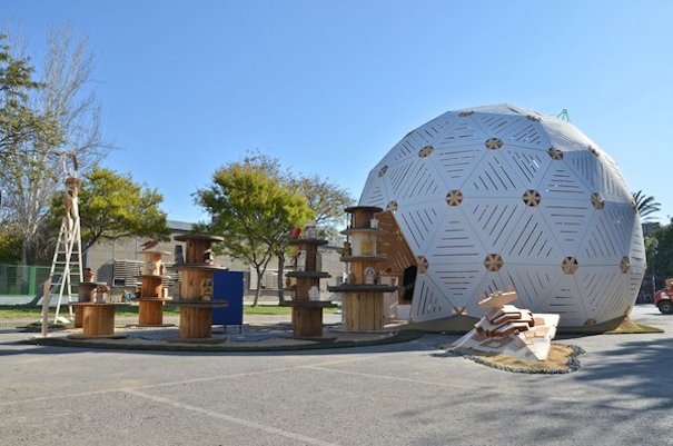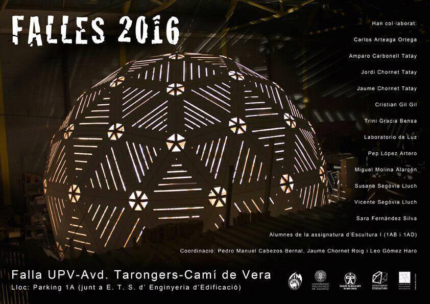 Ubicada en el parking de la Escuela Técnica Superior de Ingeniería de Edificación del campus de Vera de la ciudad, 这 falla de la UPV destaca por su innovadora estructura, en forma de esfera geodésica icosaédrica (de ocho metros de diámetro), diseñada por el profesor del Departamento de Expresión Gráfica Arquitectónica, Pedro M. Cabezos, y recubierta por una piel realizada con planchas de madera contrachapada ranuradas.