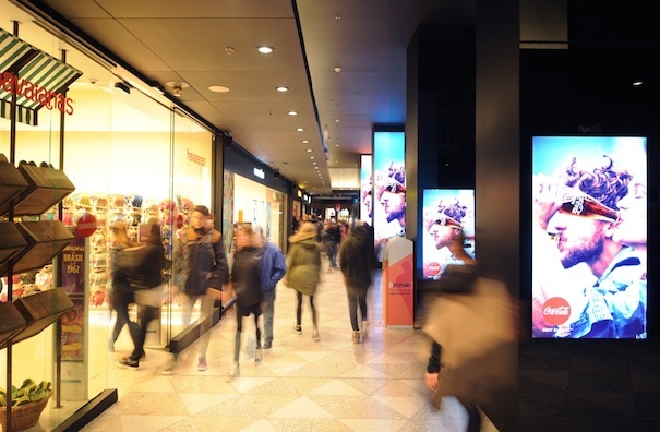数字标牌公司, 拥有 600 个 iwall,分布在西班牙各地的 50 个购物中心, 现在已经添加了九个屏幕 65 距离位于加泰罗尼亚首都中心的改造空间仅几英寸.