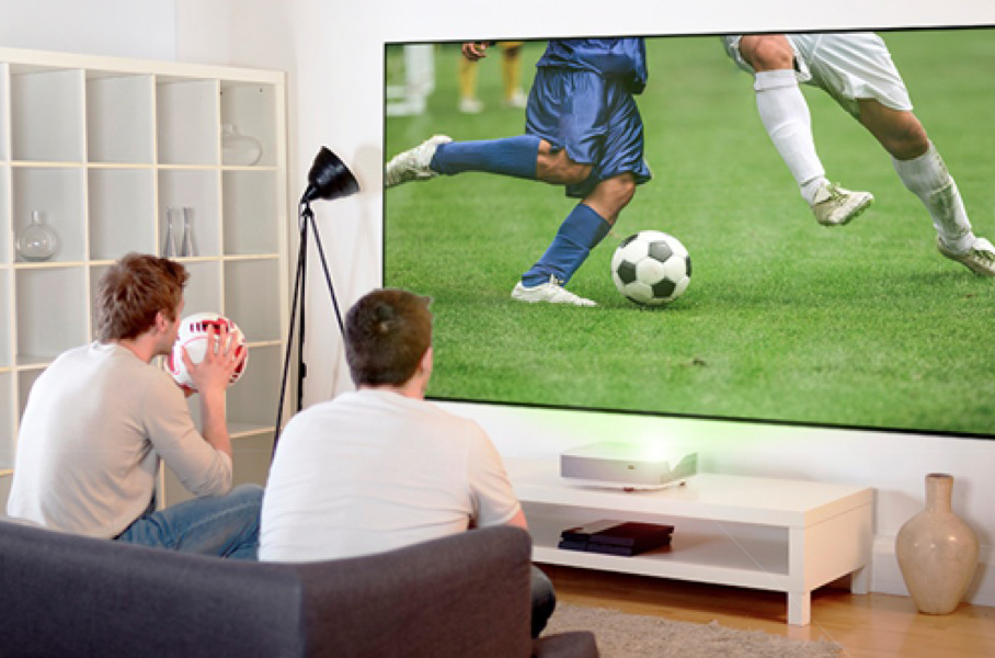 Esta solución de proyección con reducción de luz ambiental ofrece imágenes súper grandes con marco fijo de 100 pulgadas en cualquier momento del día. Su superficie especial está diseñada para reflejar activamente la imagen proyectada con un alto contraste y saturación de color, previniendo que la luz ambiente proporcione un aspecto de lavado de la imagen.