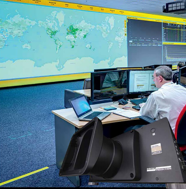Los cuatro equipos de Digital Projection que se han instalado en el techo de la sala optimizan la labor realizada en el centro que consiste en recoger los datos en tiempo real de todas aquellas maquinas que disponen de un dispositivo telemático LiveLink.