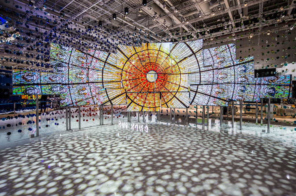 ‘El origen de Quantum dot’ es una instalación artística que los visitantes de IFA 2016 tienen todavía la oportunidad de ver, ya que el certamen cerrará hoy sus puertas, fruto de la colaboración creativa de un equipo de artistas alemanes para componer una singular obra de arte de 9.000 cascos de vidrieras de colores -con sonido, vídeo y esculturas- y 45 televisores SUHD de 三星电子 con tecnología Quamtum dot.