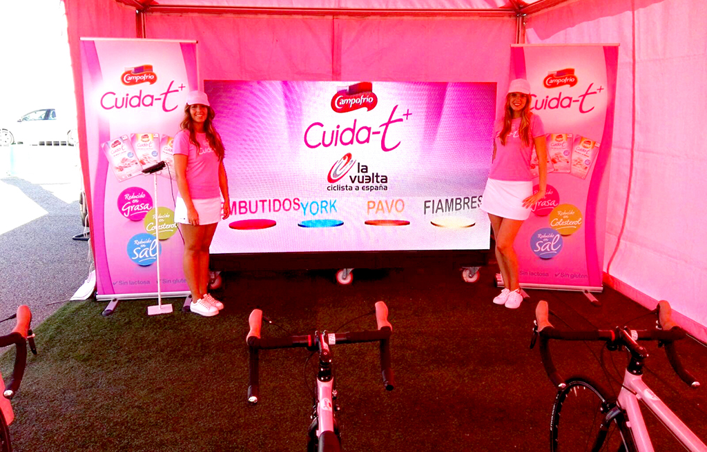 Un remolque con pantalla Led ha sido la última adquisición de Eikonos y el medio que ha permitido a los habitantes de 21 ciudades ver en directo la Vuelta Ciclista y fomentar la vida sana con una aplicación personalizada.