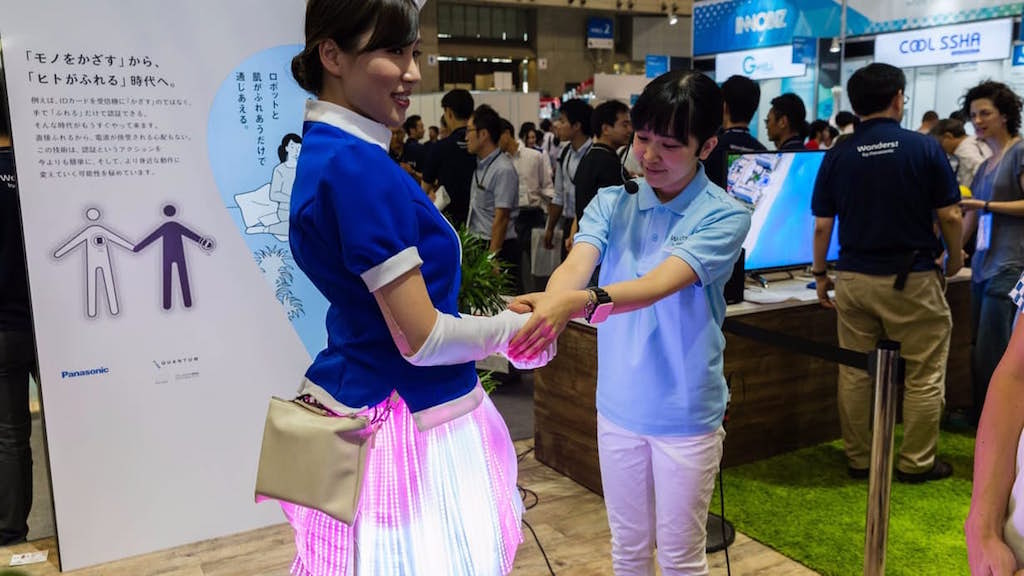 Crear una red inalámbrica de sensores para transmitir información y datos privados desde nuestro cuerpo a otras personas con sólo un apretón de manos es la futurista tecnología que el fabricante ha mostrado en Ceatec Japón 2016 con este prototipo que utiliza la tecnología de comunicación de campo eléctrico.