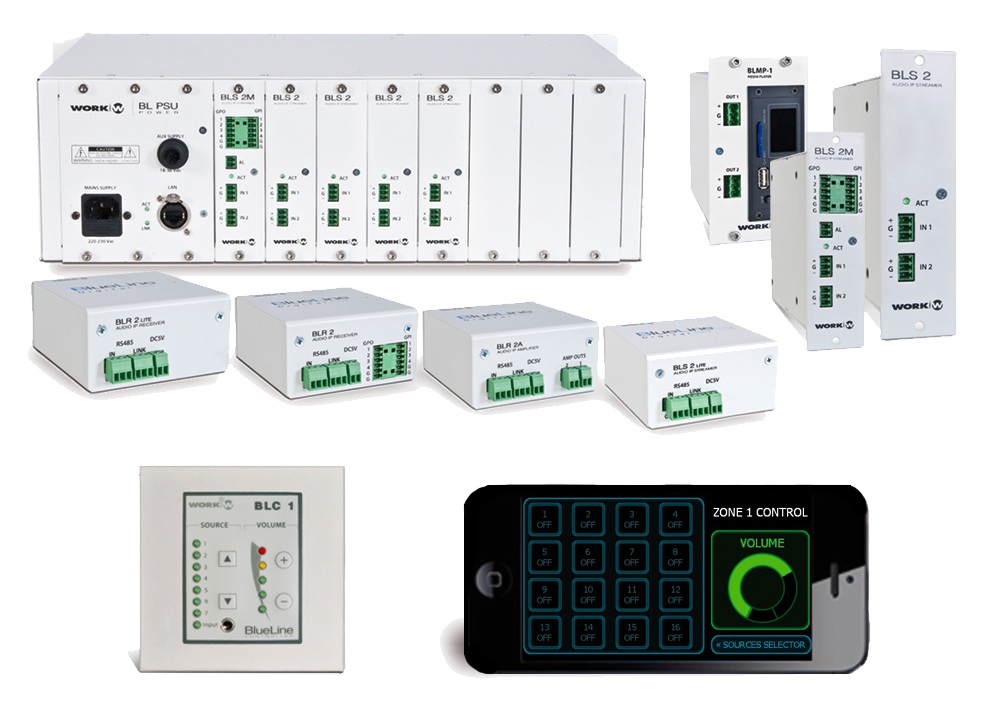 Entre las líneas que se pudieron ver en esta feria en el stand de Work Pro, 其品牌在西班牙经销 埃普森, destaca la gama BlueLine Digital System, un sistema de distribución de audio basado en streaming a través de Ethernet que puede adaptarse a las necesidades del usuario.