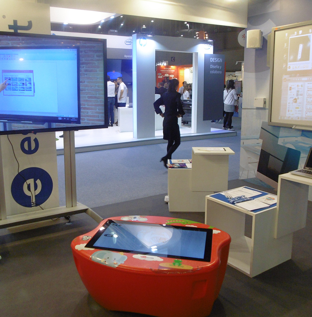 En la zona dedicada al aula de alumnos prima la interactividad con pizarras interactivas de gran formato multiCLASS, monitores táctiles y la mesa interactiva Kids Table del fabricante español, que fue presentada como novedad en la pasada edición de SIMO Educación, así como proyectores de 奥图码. 此外, también puede verse un puesto de información eTile de 19 英寸 打开 y proyectores de Optoma.