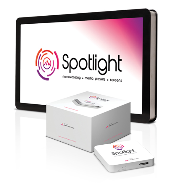 En el entorno del digital signage o la cartelería digital Xenox también cuenta, 从 2013, con Spotlight, su propia solución para la difusión de contenidos multimedia. Perfecto para presentar eventos, promociones o cualquier tipo de mensaje que un establecimiento quiera dar a conocer a través de sus pantallas.