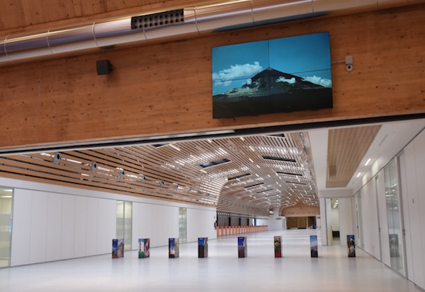 El proyecto ha contado con la aportación del especialista en cartelería digital 拉福尔哈系统公司, que se ha centrado en la comunicación con los futuros cruceristas. 总共有 83 pantallas componen la red de visualización este espectacular edificio, que está compuesto por 61 mostradores de check-in, diez monitores para la señalización en la recogida de maletas y doce monitores que forman los tres videowalls (在配置2中×2) situados en distintas zonas comunes de la terminal.