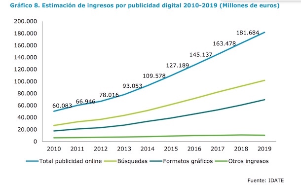 除了, 数字内容领域投资增长 1,5% 这是 790 百万欧元, 他 31,7 % 内容行业发生的事情 (2.486 百万欧元). 该报告还强调了互联网对西班牙经济的重要性, 这翻译成 50.602 百万欧元, 和 5,2% 国内生产总值.