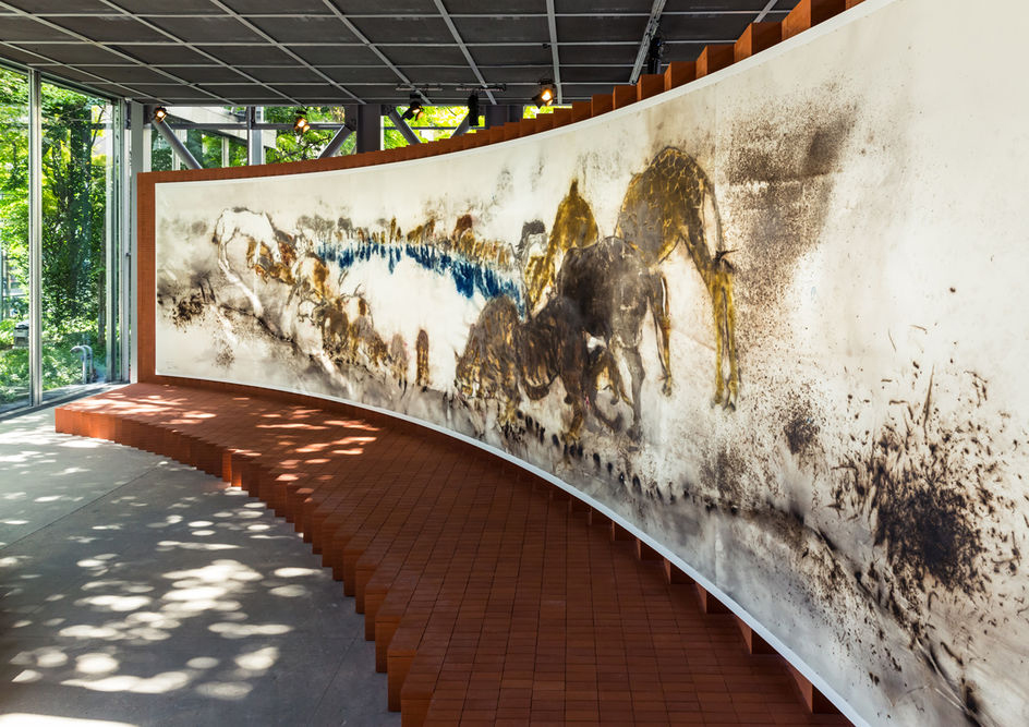 Uno de los elementos destacados es ‘White Tone’, una obra de 18 metros del artista chino Cai Guo-Qiang creada con pólvora sobre papel, a la que prendió fuego en un gran espectáculo. Las quemaduras resultantes representan un intrincado conjunto de diferentes especies animales salvajes reunidas en torno a un abrevadero, en un estilo que evoca las pinturas de las cuevas prehistóricas.